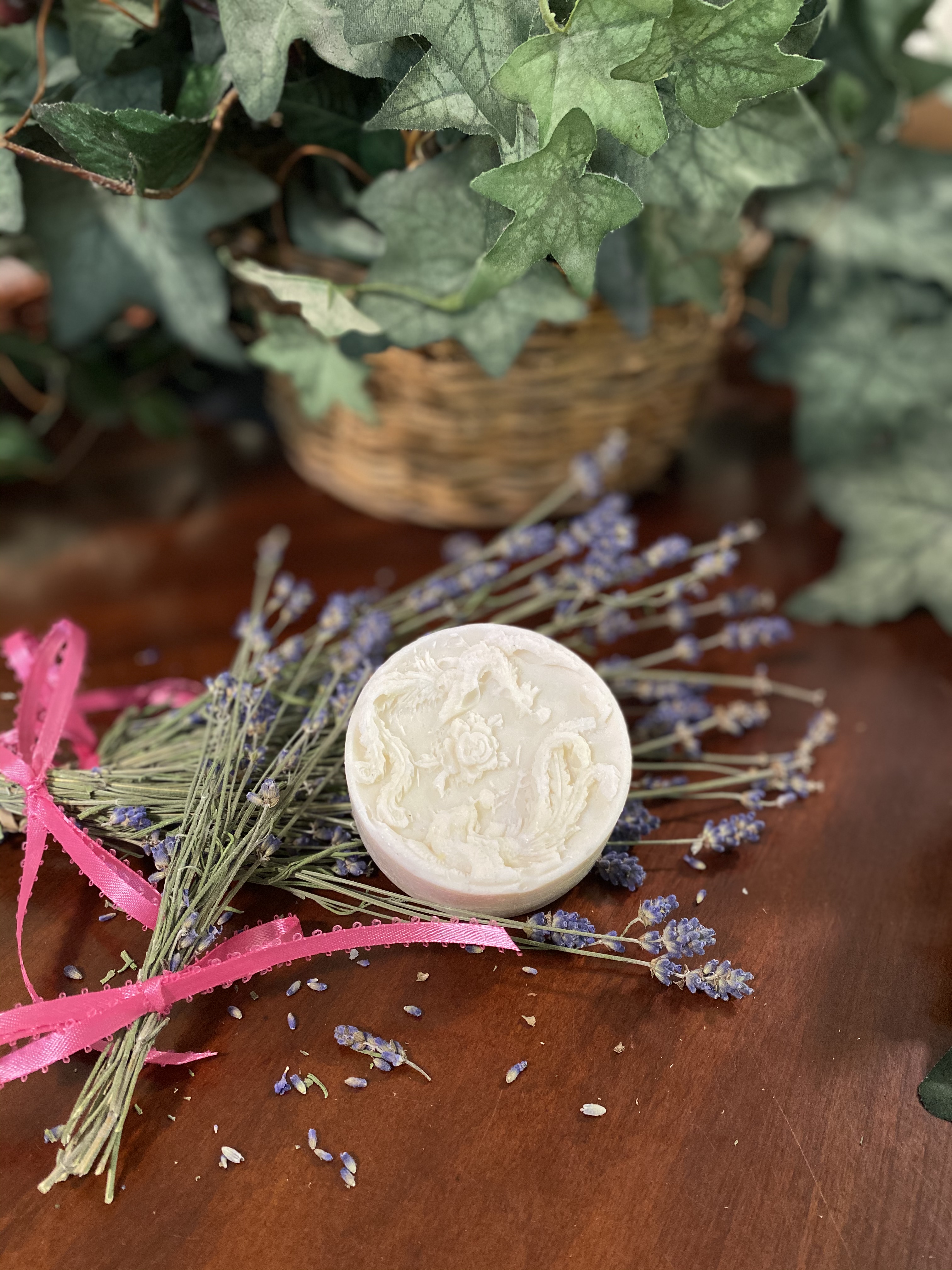 Lavender Scented; infused with lavender buds grown from our very own gardens and with lavender essential oils. Molded.