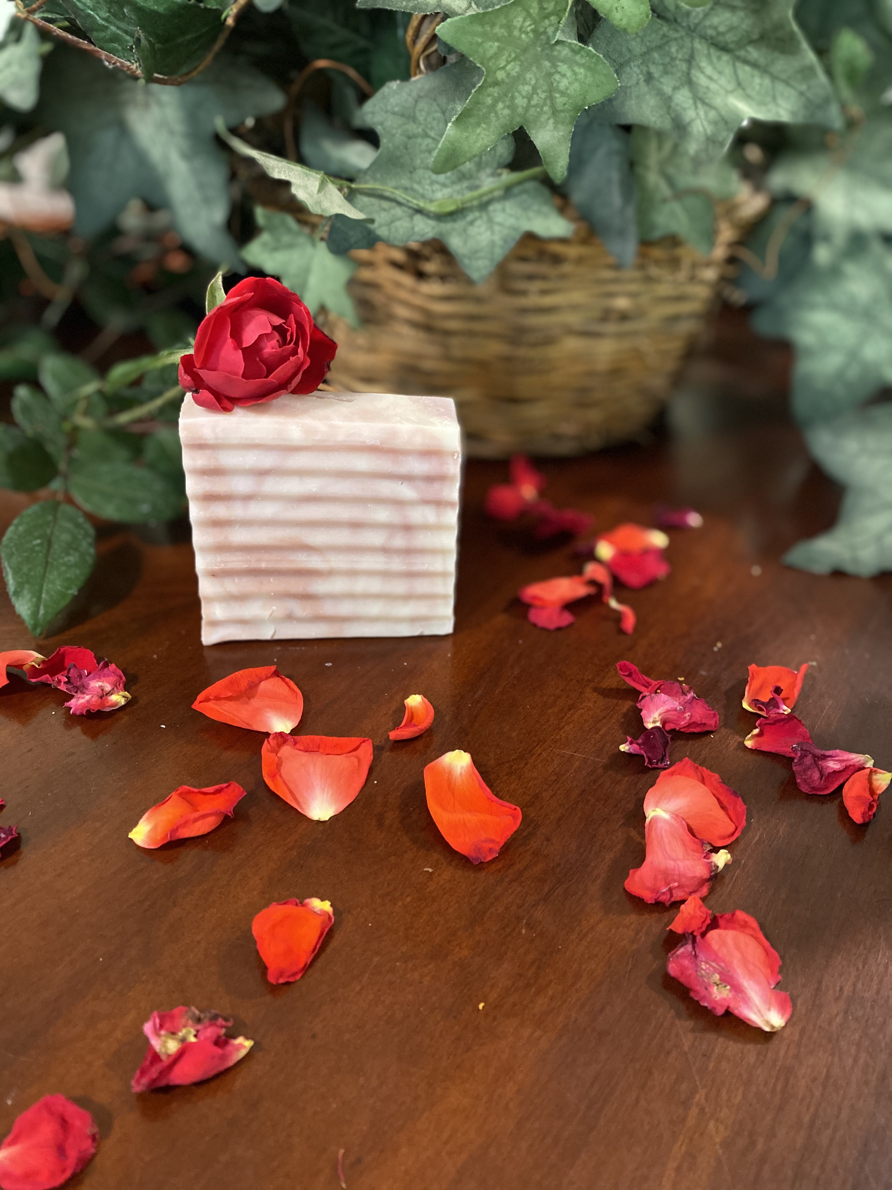 Rose scented bar soap. Infused with rose petals and essential oils.